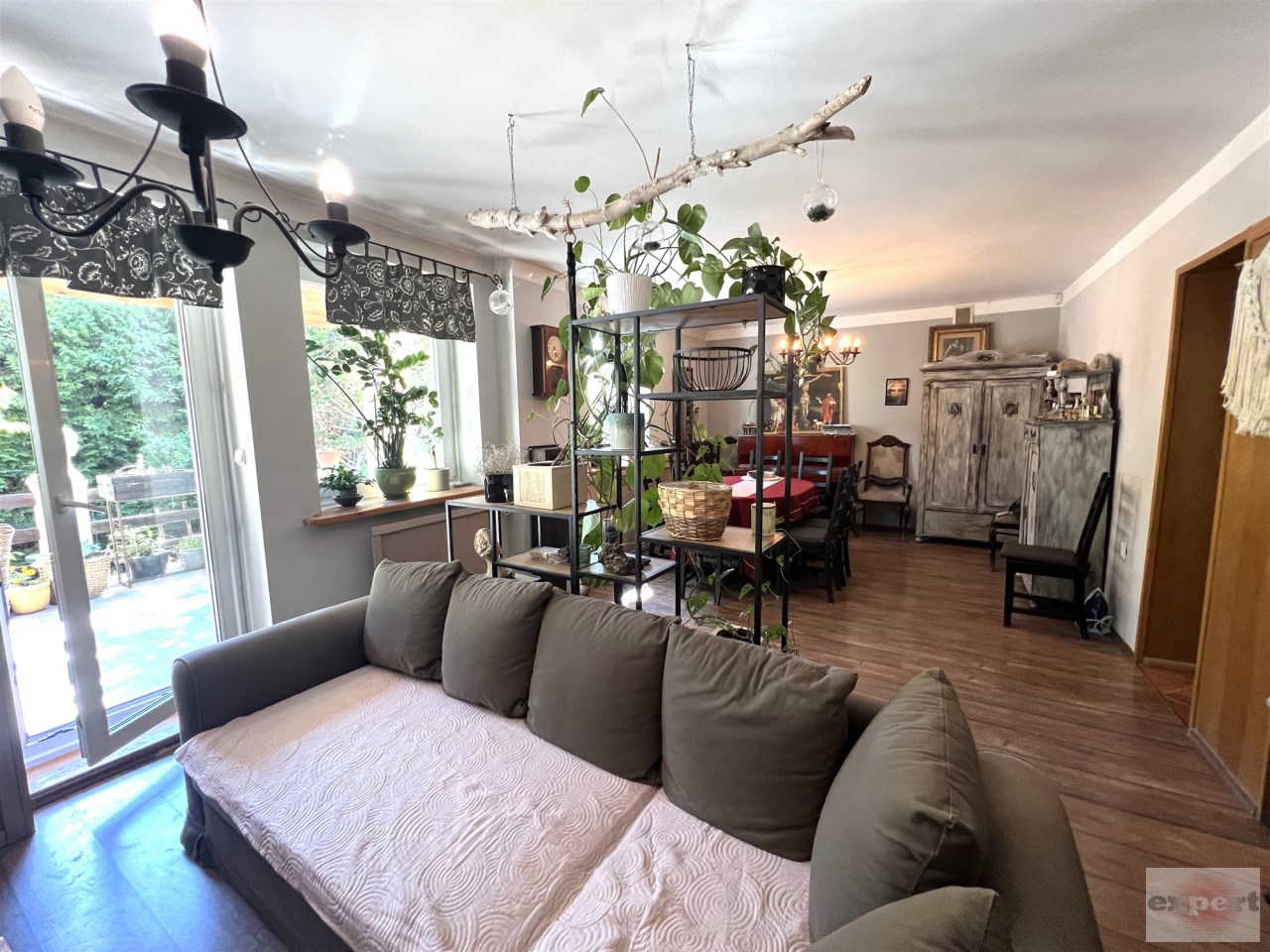 - SALON 33,60 m, duży salon otwarty na holl, z wyjściem na duży TARAS od strony ogrodu, podłoga eleganckie panele, ściany gładzie gipsowe, 2 duże okna PCV, roletki okienne, KOMINEK typu KOZA, w salonie STREFA WYPOCZYNKOWA i STREFA JADALNA