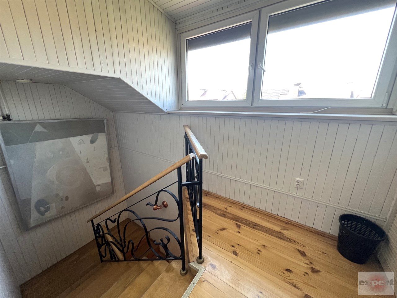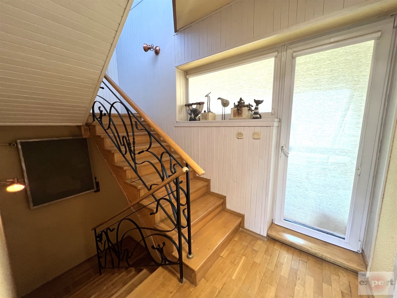 - KLATKA SCHODOWA : SCHODY WEWNĘTRZNE - żelbetowe + okładzina drewniana, barierki drewno i stal, ŚCIANY GŁADZIE GIPSOWE i BOAZERIA w kolorze białym