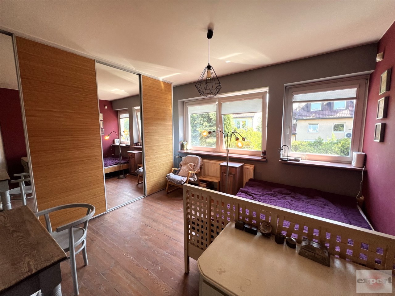 - 3 POKOJE : ściany gładzie gipsowe, tapeta i tynk ozdobny, podłogi deski drewniane, w 2 pokojach duże szafy w zabudowie