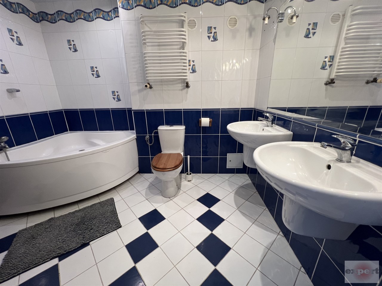 - ŁAZIENKA : w glazurze i terakocie, z wanną, 2 umywalkami, lustrem i sedesem