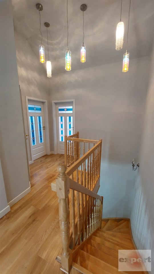 Piękne drewniane schody prowadzące na poddasze odkrywają przed nami korytarz prowadzący do trzech przestronnych i funkcjonalnych sypialni. Każda z nich została zaprojektowana z myślą o maksymalnym komforcie mieszkańców. Na piętrze znajduje się również duża łazienka z wanną oraz mini garderoba. Z głównego holu jest wyjście na duży balkon.