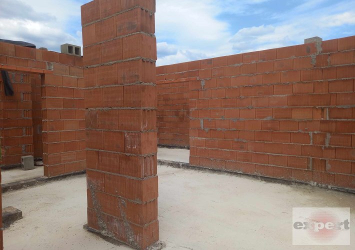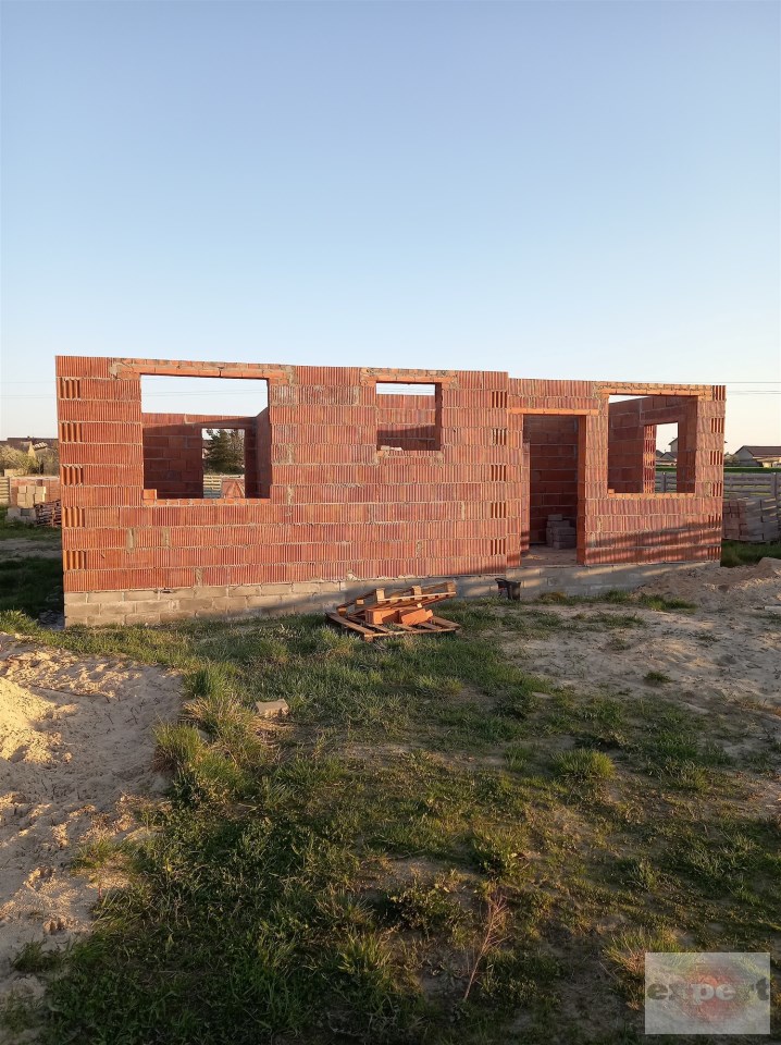 Dom wykonany z pustaka max, grubość ścian zewnętrznych 25 cm.