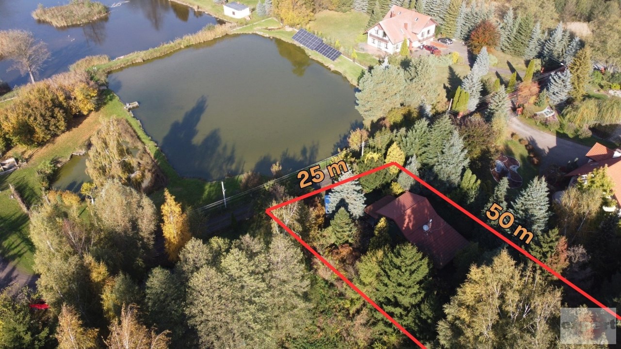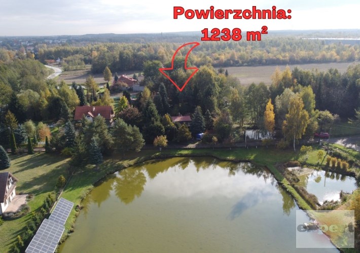 Działka o powierzchni 1238 m² jest w pełni zagospodarowana – dużo zieleni, krzewów oraz przestrzeni do wypoczynku. Nieruchomość od dużego stawu oddziela jedynie droga dojazdowa, co czyni to miejsce idealnym dla w miłośników natury.
