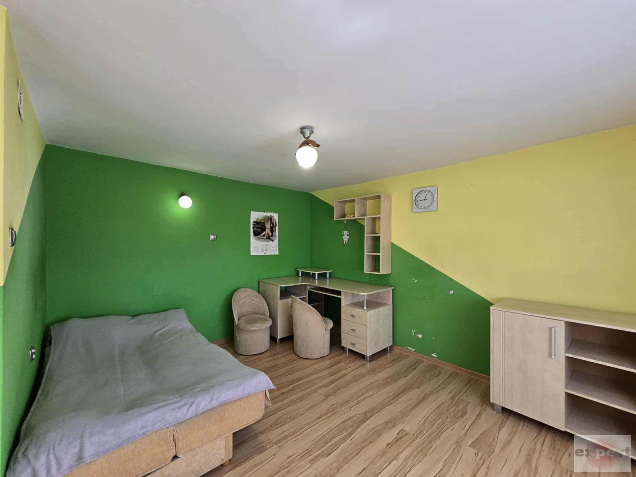 Na parterze znajdziemy wiatrołap, pokój gościnny lub gabinet, kuchnię widną z oknem, z zabudową mebli kuchennych i sprzętu AGD, duży hol, pokój z wyjściem na taras od strony południowej z widokiem na drogę i sad, 2 sypialnie, łazienkę wyposażoną w kabinę prysznicową, WC, schowek pod schodami, kotłownię. Na poddaszu druga łazienka, duża sypialnia z możliwością podziału na dwie z niezależnymi wejściami, miejsce na garderobę, klatka schodowa, dodatkowe pomieszczenie ze skosem do adaptacji na kolejny pokój.