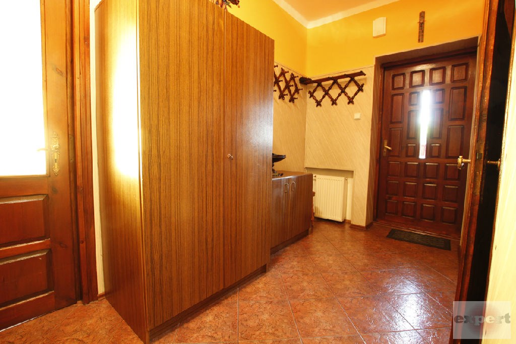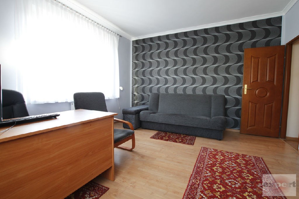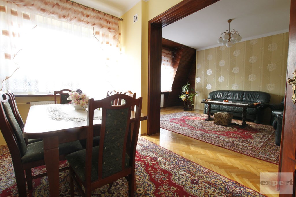 W domu znajduje się przestronny salon o pow. 35 m2, kuchnia 9,50 m2, korytarz 7,50 m2, dwie łazienki wyposażone w wannę, kabinę prysznicową oraz 4 pokoje przestronne, ustawne o powierzchni 18,50 m2, 17 m2, 14,5 m2, 9,14 m2. W całym domu na ścianach gładzie, malowane, częściowo tapety. Na podłodze panele, terakota, parkiet. W łazienkach glazura i terakota nowego typu. W całym domu okna PCV, centralne ogrzewanie gazowe.