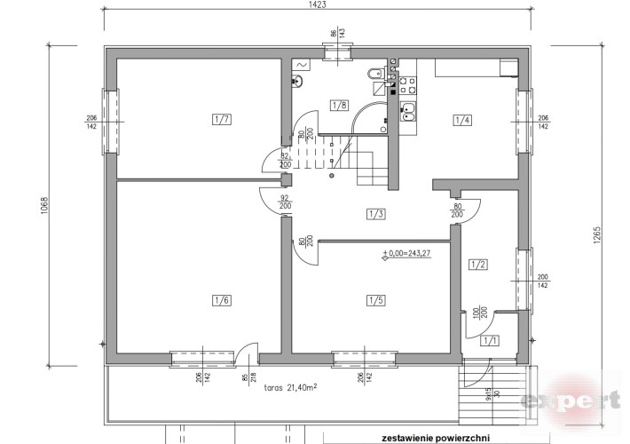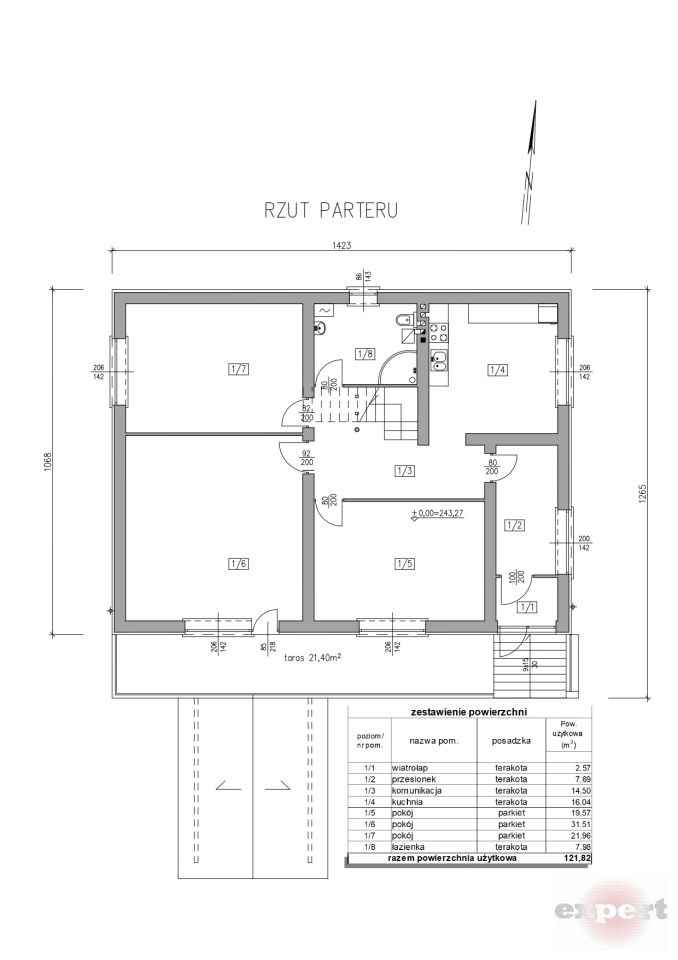 Powierzchnia parteru: 121 m²