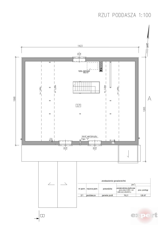 Powierzchnia poddasza: 77 m²