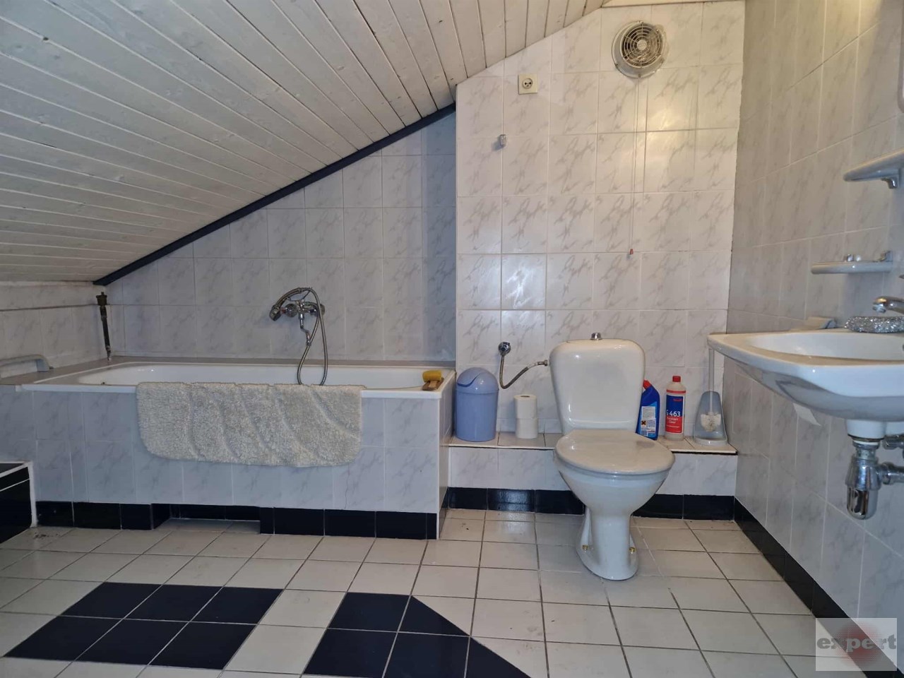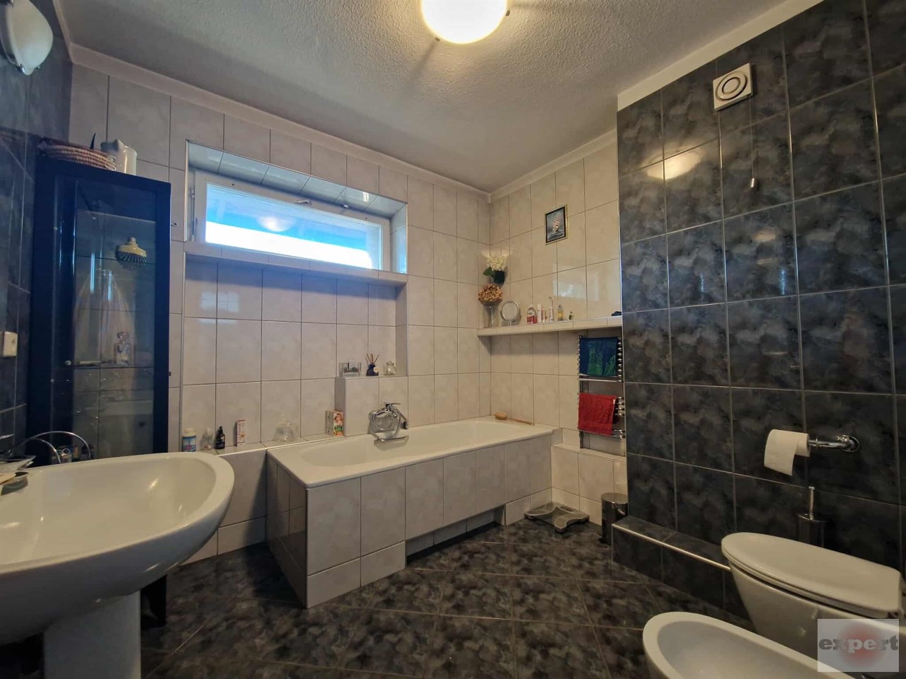 - duża łazienka ok. 12 m2 wyposażona w wannę, umywalkę, bidet razem z wc