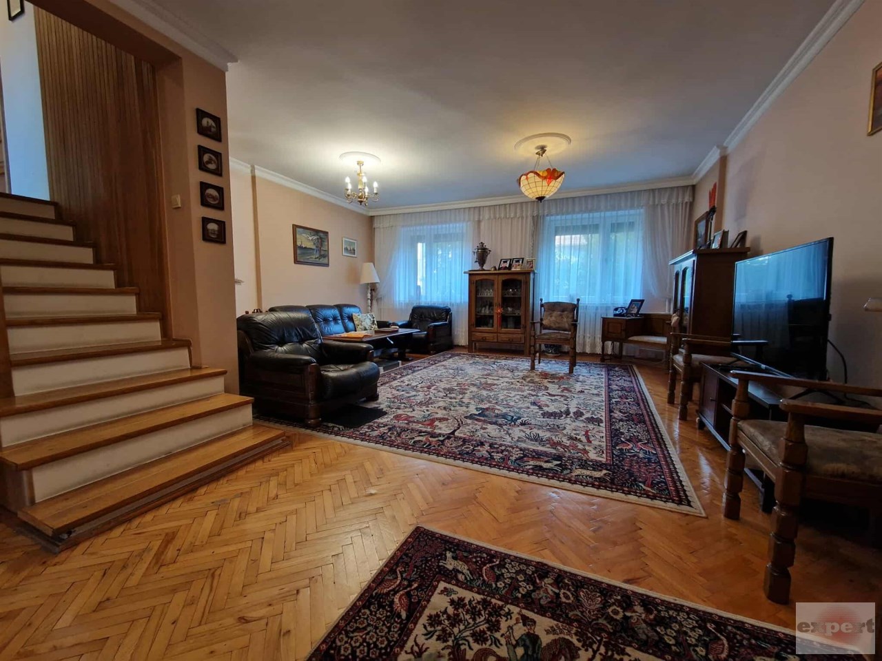 - duży salon o powierzchni ok. 50 m2 z funkcjonującym kominkiem oraz umeblowaniem