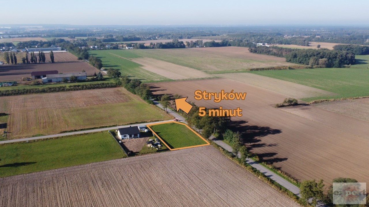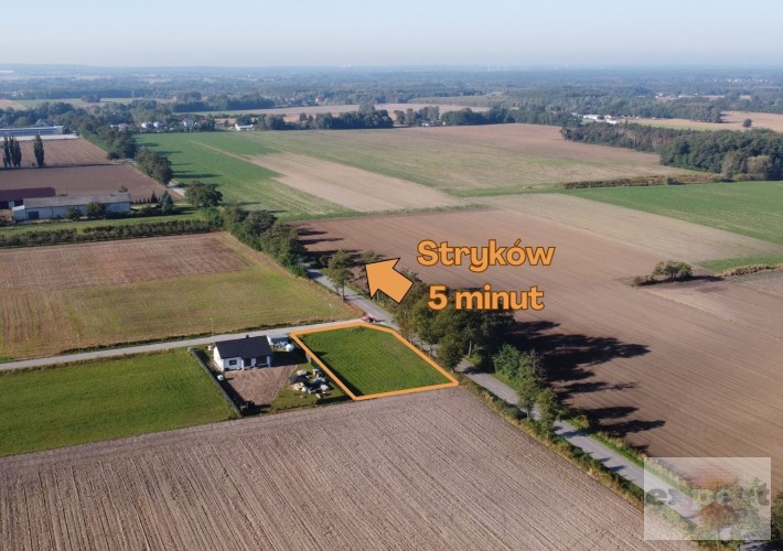 Działka znajduje się bezpośrednio przy asfaltowej drodze gminnej, z jednej strony graniczy z nową zabudową jednorodzinną. Otaczają ją pola, zabudowania jednorodzinne oraz rozległe tereny zielone co zapewnia piękne widoki i walory przyrodnicze. Okolica jest cicha, idealna dla osób szukających przestrzeni i spokoju z dala od miejskiego zgiełku, jednocześnie z szybkim dojazdem do Strykowa.