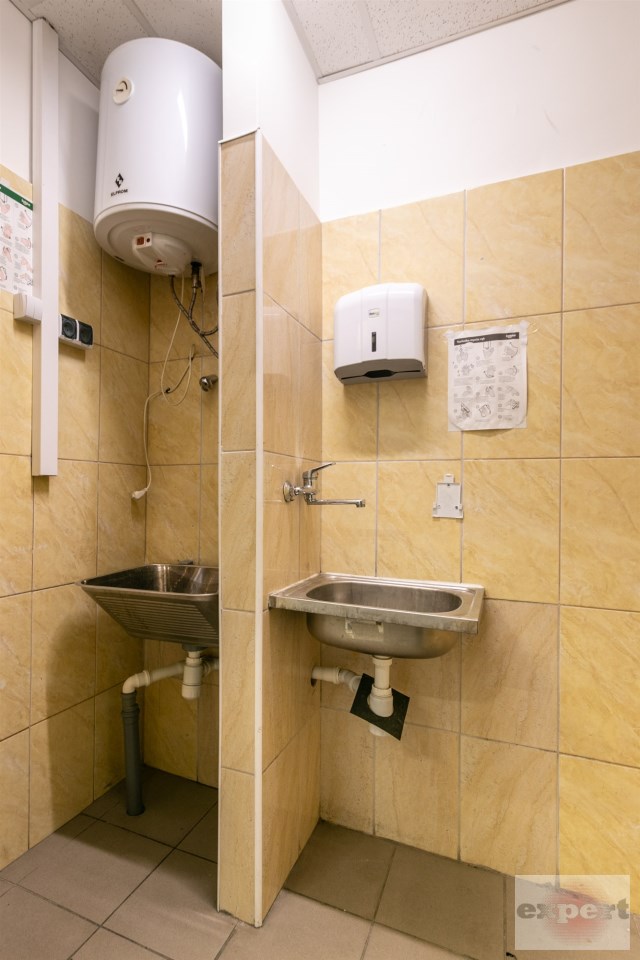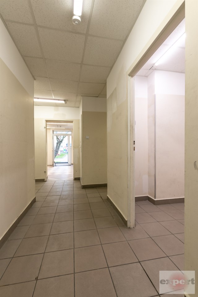 Był wynajmowany na sklep Żabka w związku z tym ściany w wewnątrz budynku zostały zaadoptowane pod funkcjonowanie tej działalności.