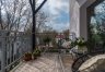 Teren ogrodzony, z licznymi nasadzeniami krzewów i drzew ozdobnych.