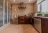 Kuchnia - drewniane meble w zabudowie, blat granitowy, na ścianie w