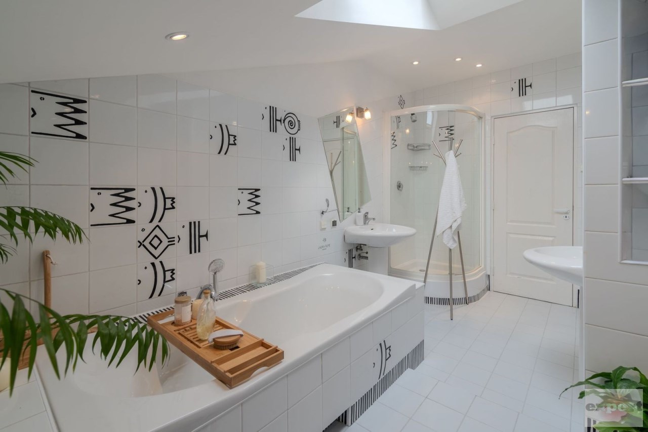 - pokój kąpielowy - wanna, natrysk, toaleta, okno dachowe, glazura, terakota, do łazienki jest przejście z garderoby, ale również wejście z przedpokoju;