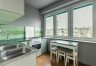 Okolica jest wyjątkowo cicha i zielona, a widok z mieszkania rozciąga się na osiedle.