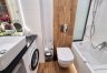 - ŁAZIENKA: ściany: glazura i gładzie gipsowe podłoga: terakota; wanna, sedes, lustro, umywalka, szafka pod umywalkę