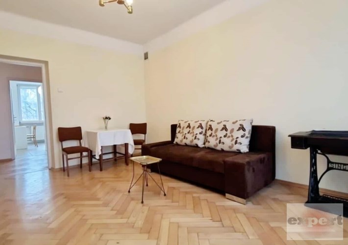 Mieszkanie dwupokojowe w pełni rozkładowe, ustawne, widne pokoje. Jeden pokój na planie kwadratu 3,6x3,6; drugi prostokąta 4,7x3,5. Wysokość w pomieszczeniach 2,75 m. Na podłodze ładny bukowy parkiet, po gruntownej renowacji czyli ponownym zerwaniu, przełożeniu, cyklinowaniu i polakierowaniu. Mieszkanie do odmalowania i do zamieszkania. W jednym pokoju jest wbudowana szafa wnękowa, z zamykanym biurkiem. W kuchni nowe meble pod wymiar. Łazienka z wanną, umywalką i wc. Załączony orientacyjny rzut mieszkania.