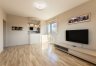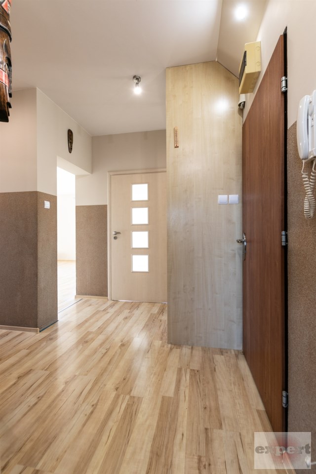 Mieszkanie zostało odmalowane w kolorach beżu, na podłogach leżą panele.