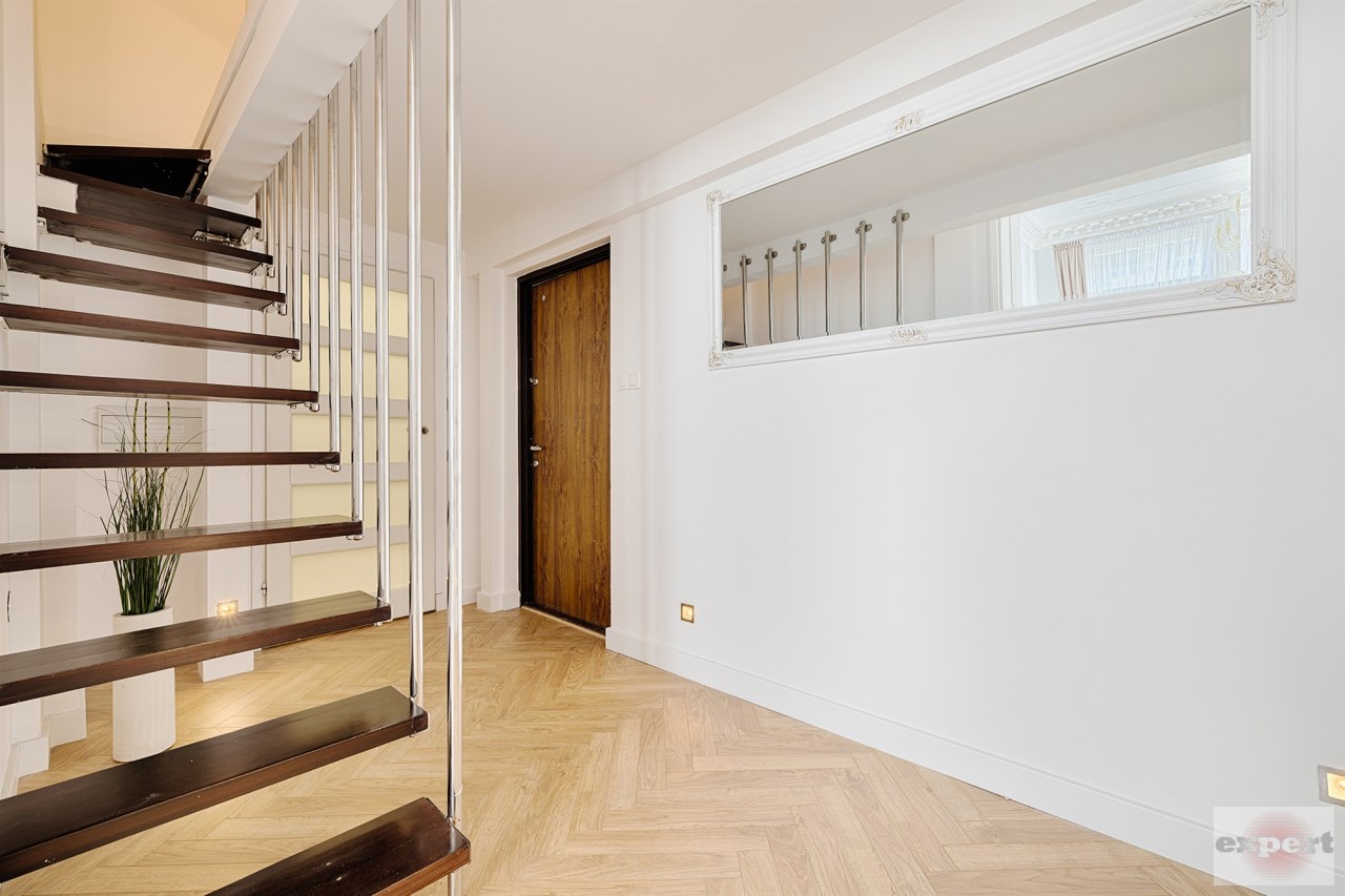 Lokal składa się z dwóch pokoi, kuchni, antresoli, garderoby, przedpokoju i łazienki.