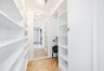 Garderoba: półki i drążki na wieszaki, szafka zamykana, duże lustro.