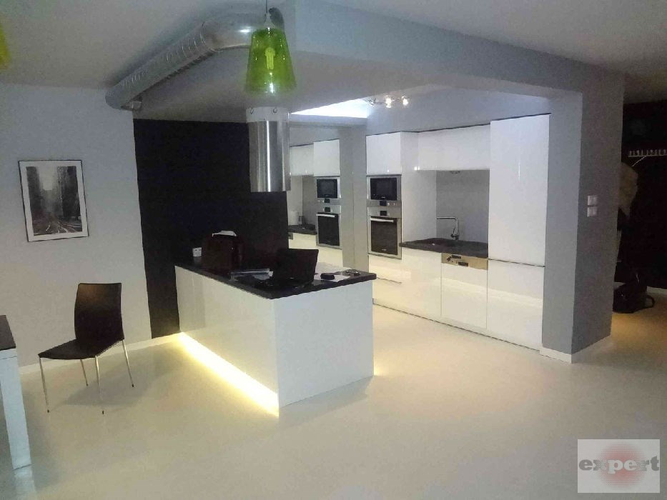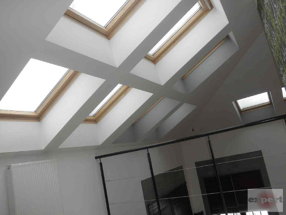 - SALON Z ANEKSEM KUCHENNYM: olbrzymi salon, który w najwyższym punkcie ma 6m wysokości, duże okna typu witryna bardzo dobrze doświetlające całą powierzchnię (dodatkowo okna dachowe), na podłodze parkiet, w salonie skórzany komplet wypoczynkowy (narożnik + ława skórzana), szezląg, szafka pod telewizory, telewizor 42", zestaw kina domowego,