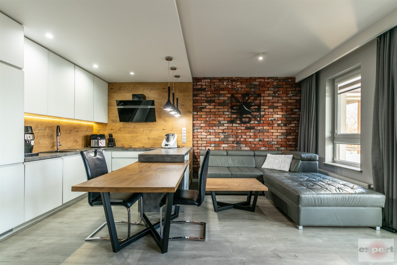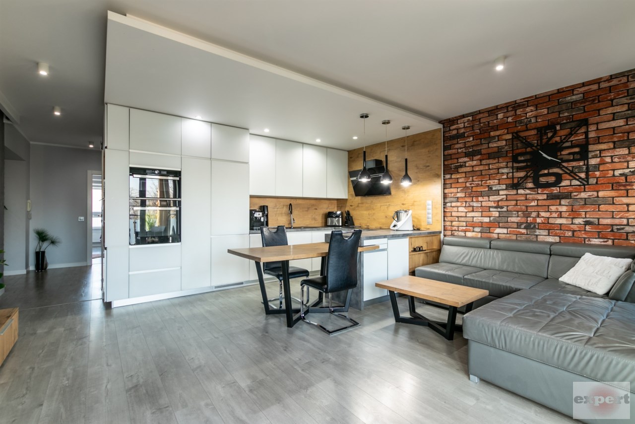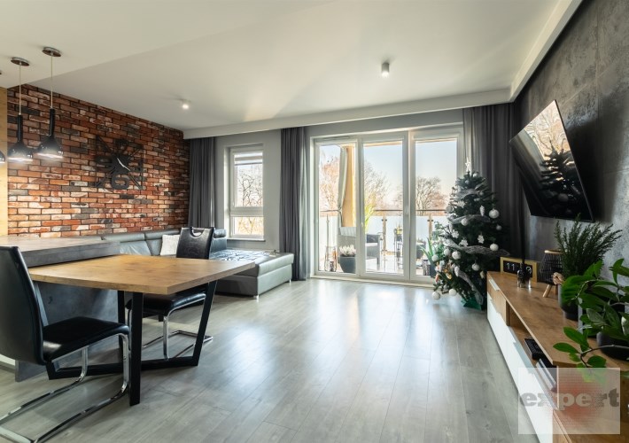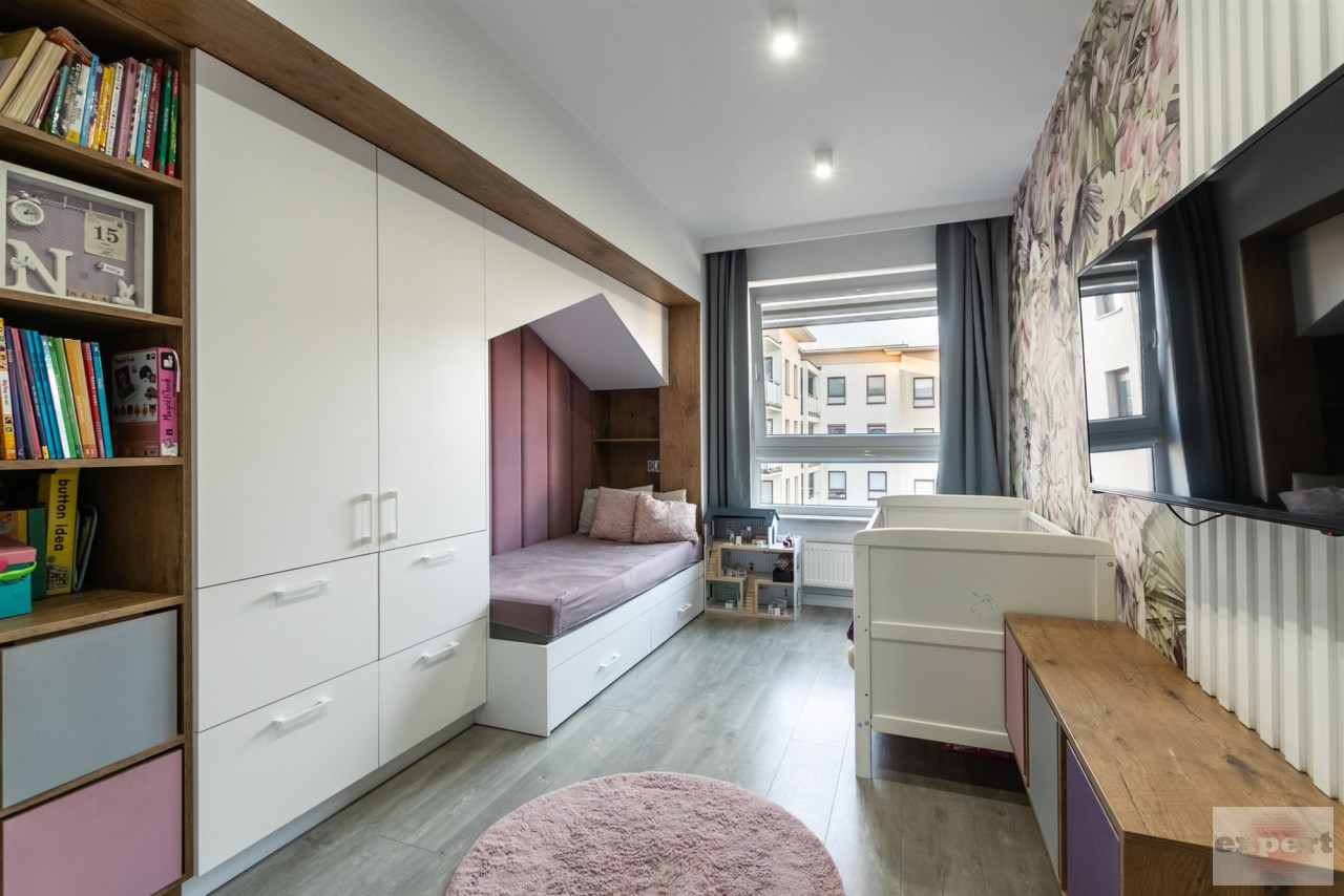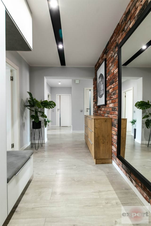Mieszkanie o powierzchni 95,37 m² i znajduje się trzecim piętrze budynku z windą. Składa się z salonu połączonego z aneksem kuchennym, pomieszczenia gospodarczego (spiżarnia), trzech sypialni, łazienki z wc. Całość została urządzona w eleganckim i nowoczesnym standardzie.