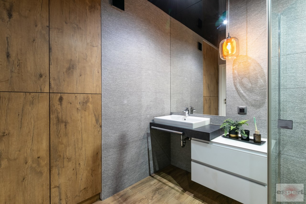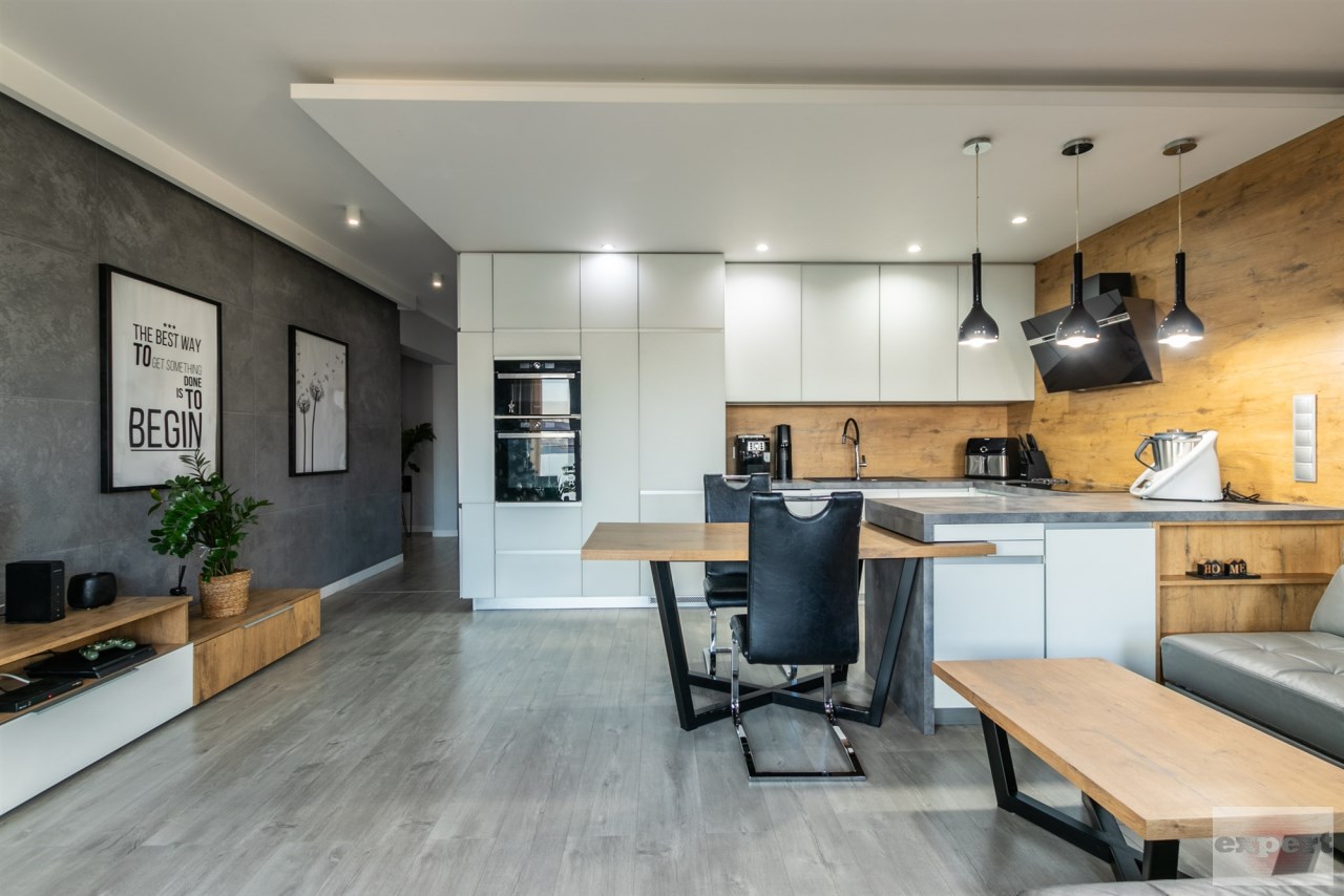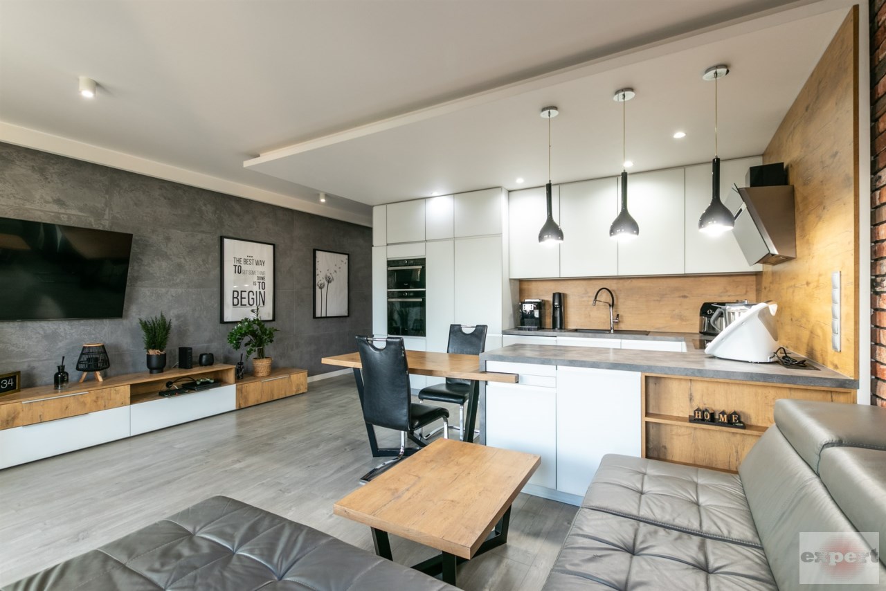 Mieszkanie o powierzchni 95,37 m² i znajduje się trzecim piętrze budynku z windą. Składa się z salonu połączonego z aneksem kuchennym, pomieszczenia gospodarczego (spiżarnia), trzech sypialni, łazienki z wc. Całość została urządzona w eleganckim i nowoczesnym standardzie.
