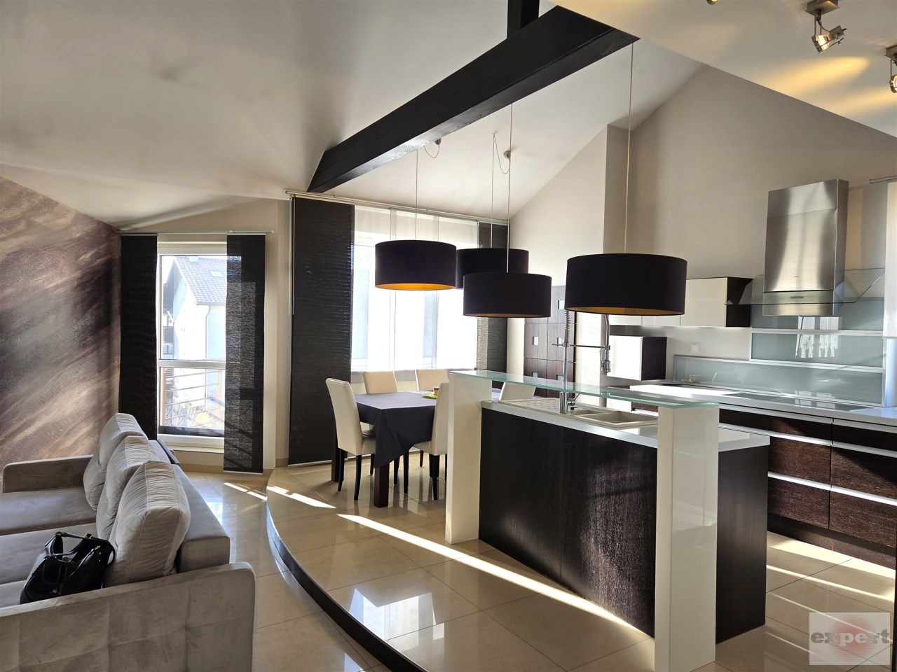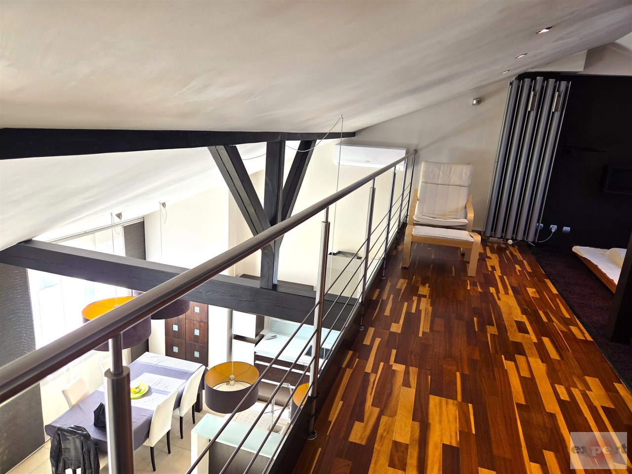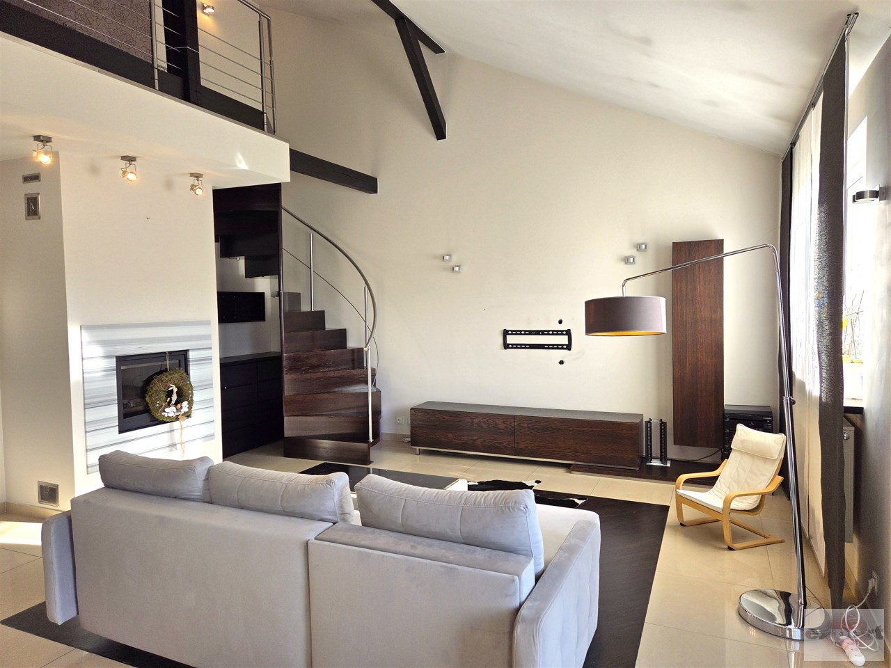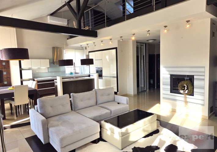 Apartament mieści się na kameralnym, zamykanym osiedlu w budynku wielorodzinnym z 2008 r. W 2013 r. mieszkanie zostało odremontowane przy użyciu wysokiej jakości materiałów. Kuchnia w zabudowie pod wymiar wyposażona w wysokiej klasy sprzęty AGD (zmywarka, płyta, piekarnik, lodówka i zamrażarka marki Siemens i Liebherr). Mieszkanie posiada absolutnie wyjątkowy, przestronny pokój kąpielowy, w którym można zrelaksować się po długim, męczącym dniu. Antresola daje dodatkową, w pełni funkcjonalną przestrzeń, oferując niesamowity widok z góry na salon i kuchnię.