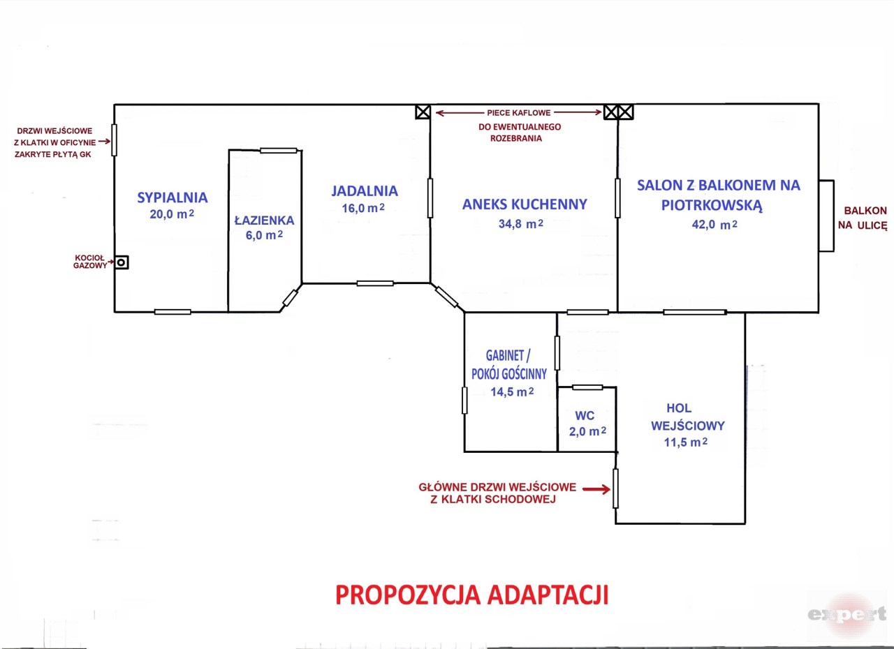 - KUCHNIA/SYPIALNIA - opcja: 21,8 m², okno na podwórze, w kuchni 2-funkcyjny piec gazowy do celów grzewczych i do ciepłej wody użytkowej, wyjście na klatkę schodową w oficynie obecnie zasłonięte płytą gipsowo-kartonową - do ewentualnego odtworzenia,